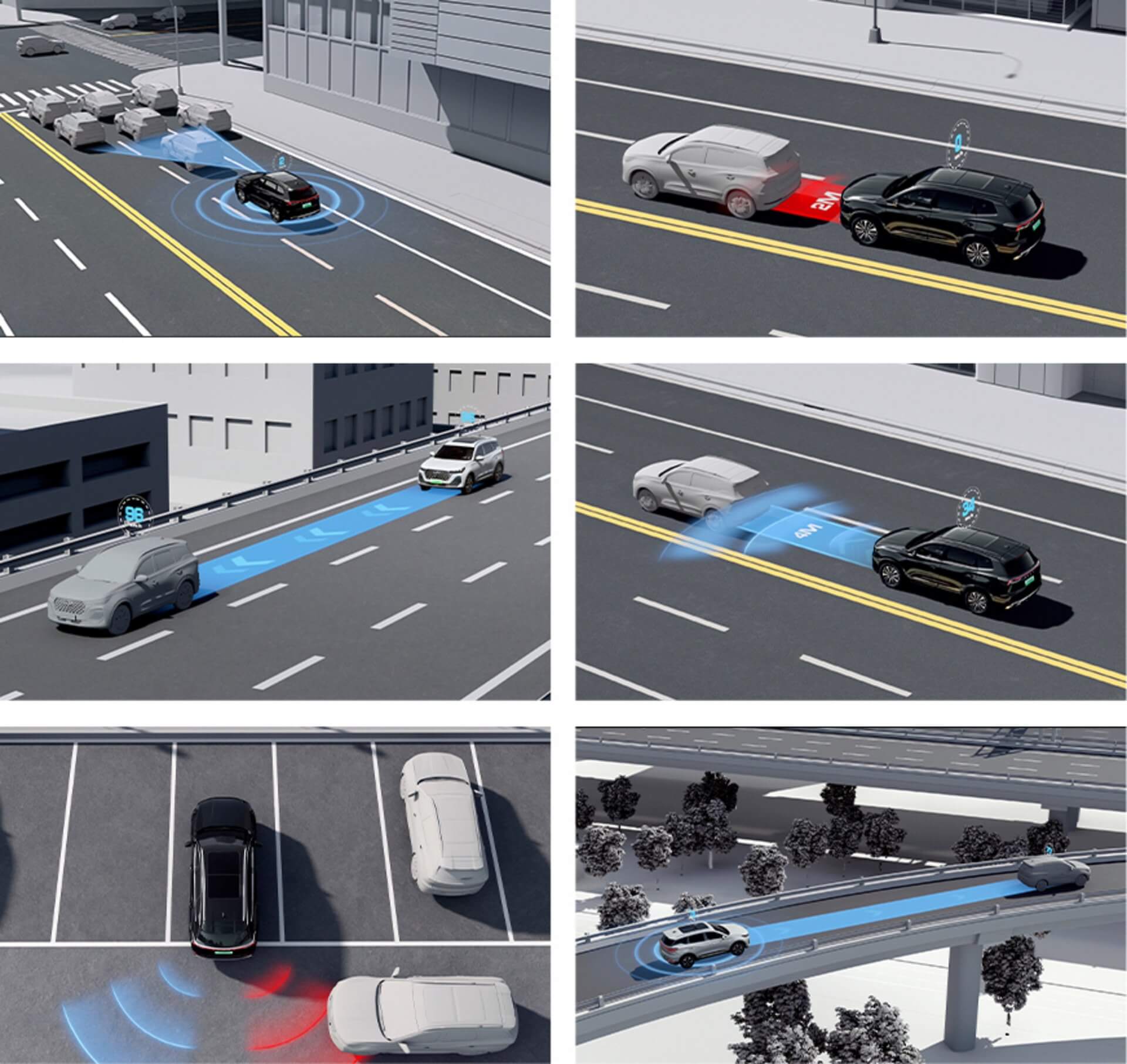 24 zaawansowane systemy wspomagania kierowcy podzielone na 8 głównych kategorii: